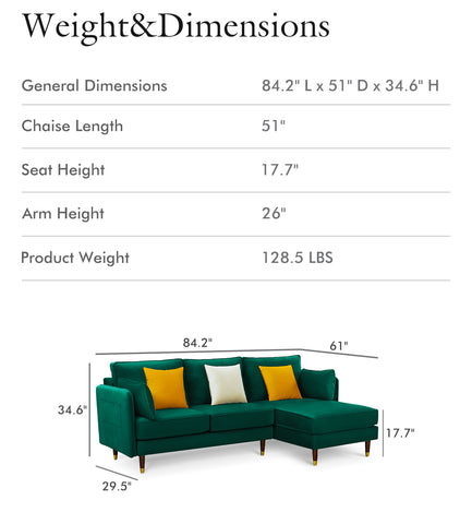 BSHTI green Copy of BSHTI Velvet Fabric Sectional Sofa